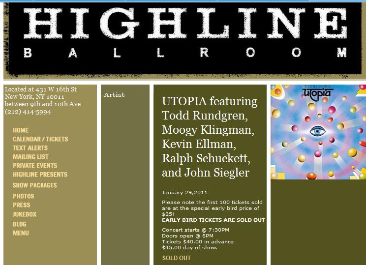 Sal, you captured every necessary detail in this review of the show and the emotional content of the crowd. We had expectations and yearnings for the magic of so long ago and of course, it was additionally fueled with our compassion for Moogy and the present state of his health and our desire to heal through our strong support of this reunion. The place was shoulder-to-shoulder, the energy as high as Akron (though I wasn't there) and the reward was immeasurable, because it had a different meaning for each and every fan. Personally, I saw the original lineup of Utopia on March 1, 1974 at Miami Beach Auditorium and this set off my devotion. I hadn't missed Todd in any of his musical incarnations on any year in any city I was living in for all these years. That singular night rocked my world and plunged me into a silent and powerful place for my own healing. Todd took me through all the traumatic and beautiful moments of my life as a single person, a married, then divorced woman, and through the birth and raising of my son. It was always there, prominently in my daily life and now in 2011, I was being rewarded by the beloved boys on stage once again. Too much to handle. The notes of certain songs went straight to my heart and memory and brought me to tears. I knew it would.